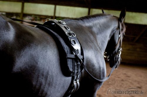 Doppellonge ist einfach gut für die Zügelhilfen und Gymnastizierung. Wenn du sie etwas höher verschnallst, bist du mehr bei den Zügelhilfen, da sich die Longe etwa auf Höhe der Reiterhand befindet. Verschnallst du sie etwas tiefer dann bist du mehr bei der lösenden Arbeit mit dem Pferd.