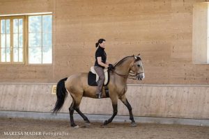 Anja Beran: Das Geheimnis dabei ist, wer die Anlehnung aufgibt. Der, der die Anlehnung aufgeben darf ist nur der Reiter und dann muss sich das Pferd von alleine tragen. Das ist ganz schwer und es braucht Jahre, bis das gelingt. Viele reiten ihr Pferd hinter der Hand. Sowohl im Englisch Reiten als auch im Westernreiten. Pferde hinter der Hand fühlen sich natürlich gut an für den Reiter, weil sie sich leicht anfühlen.